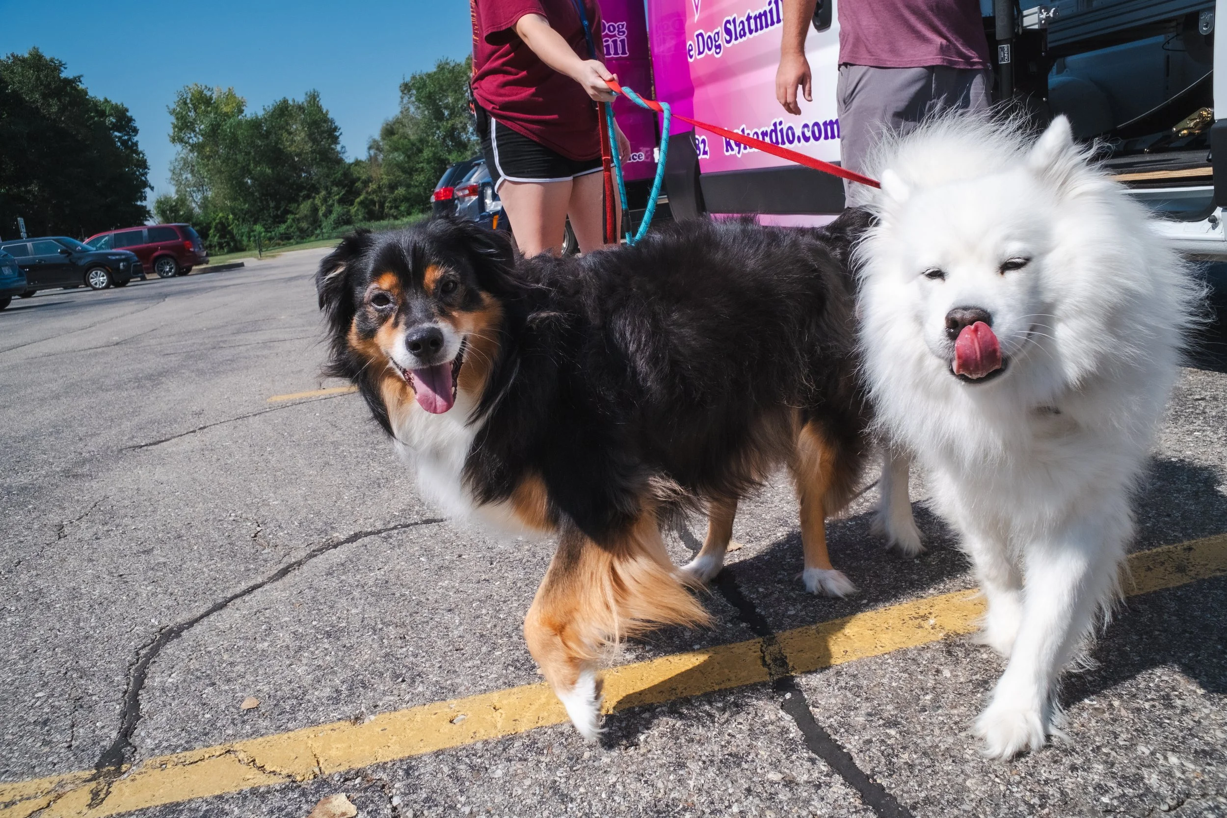 Once we retrieve your dog, we will leash them, potty them and bring them to the slatmill inside the van. We have lots of motivators if your pup is a little shy including toys, treats (in small amounts), or maybe even bringing in a familiar toy from home. We will work patiently to make sure your pup feels comfortable with each step before conquering the next one!